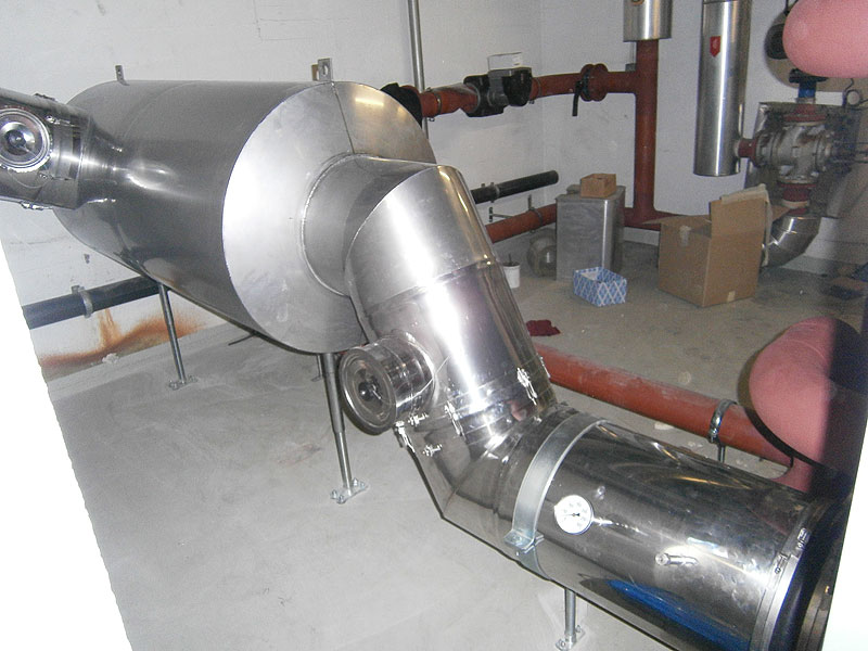 Beim Zentrum Lochergut haben wir eine Kaminanlage mit total 65 Meter eingebaut. Dabei habe wir eine Edelstahlrohr NW 350mm verbaut.